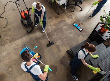 • Intensive Boden- und Flächenreinigung: Maschinen- oder Handreinigung je nach Material (Fliesen, PVC, Stein, Parkett, Estrich).